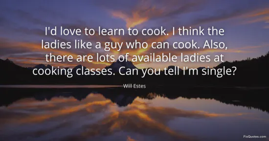 Estes, Will. (2026, January 15). I'd love to learn to cook. I think the ladies like a guy who can cook. Also, there are lots of available ladies at cooking classes. Can you tell I'm single? FixQuotes. https://fixquotes.com/quotes/id-love-to-learn-to-cook-i-think-the-ladies-like-156260/