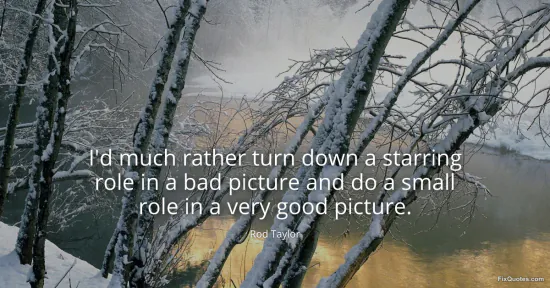 Taylor, Rod. (2026, January 16). I'd much rather turn down a starring role in a bad picture and do a small role in a very good picture. FixQuotes. https://fixquotes.com/quotes/id-much-rather-turn-down-a-starring-role-in-a-bad-94930/