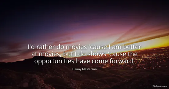 Masterson, Danny. "I'd rather do movies 'cause I am better at movies, but I do shows 'cause the opportunities have come forward." FixQuotes. January 16, 2026. https://fixquotes.com/quotes/id-rather-do-movies-cause-i-am-better-at-movies-125066/.