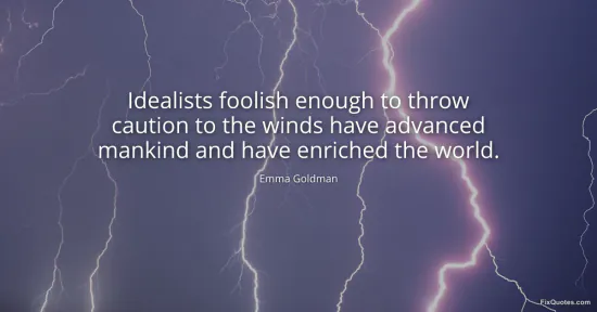 Goldman, Emma. "Idealists foolish enough to throw caution to the winds have advanced mankind and have enriched the world." FixQuotes. January 15, 2026. https://fixquotes.com/quotes/idealists-foolish-enough-to-throw-caution-to-the-145452/.
