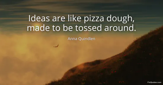 Quindlen, Anna. (2026, January 18). Ideas are like pizza dough, made to be tossed around. FixQuotes. https://fixquotes.com/quotes/ideas-are-like-pizza-dough-made-to-be-tossed-22466/