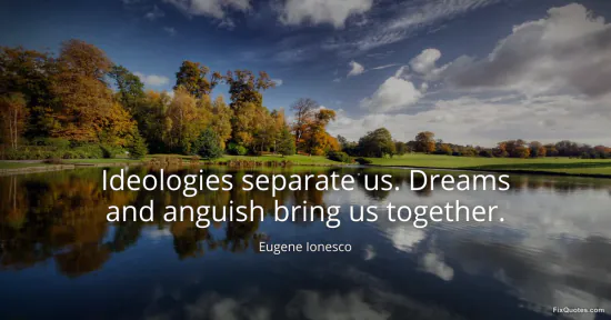 Ionesco, Eugene. (2026, January 16). Ideologies separate us. Dreams and anguish bring us together. FixQuotes. https://fixquotes.com/quotes/ideologies-separate-us-dreams-and-anguish-bring-137242/
