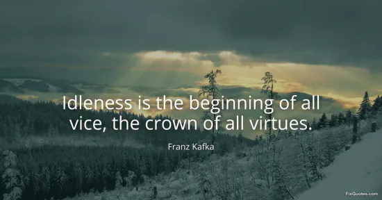 Kafka, Franz. "Idleness is the beginning of all vice, the crown of all virtues." FixQuotes. January 15, 2026. https://fixquotes.com/quotes/idleness-is-the-beginning-of-all-vice-the-crown-7022/.
