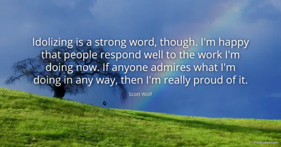 Wolf, Scott. (2026, January 16). Idolizing is a strong word, though. I'm happy that people respond well to the work I'm doing now. If anyone admires what I'm doing in any way, then I'm really proud of it. FixQuotes. https://fixquotes.com/quotes/idolizing-is-a-strong-word-though-im-happy-that-123553/