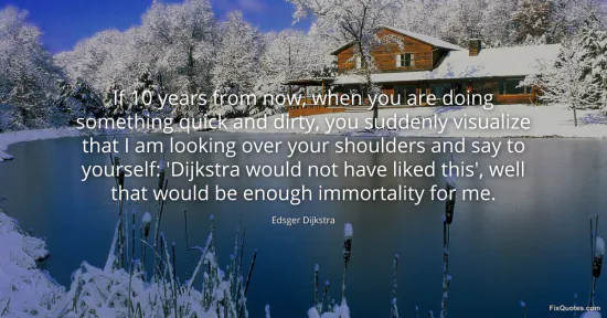 "If 10 years from now, when you are doing something quick and dirty, you suddenly visualize that I am looking over your shoulders and say to yourself: 'Dijkstra would not have liked this', well that would be enough immortality for me"