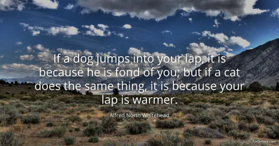 Whitehead, Alfred North. "If a dog jumps into your lap, it is because he is fond of you; but if a cat does the same thing, it is because your lap is warmer." FixQuotes. January 18, 2026. https://fixquotes.com/quotes/if-a-dog-jumps-into-your-lap-it-is-because-he-is-20101/.