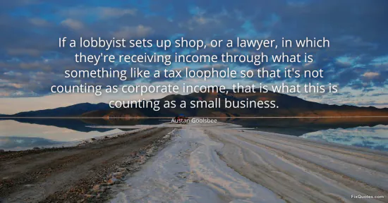 "If a lobbyist sets up shop, or a lawyer, in which they're receiving income through what is something like a tax loophole so that it's not counting as corporate income, that is what this is counting as a small business." FixQuotes, 17 Jan. 2026, https://fixquotes.com/quotes/if-a-lobbyist-sets-up-shop-or-a-lawyer-in-which-46734/. Accessed 12 Feb. 2026.