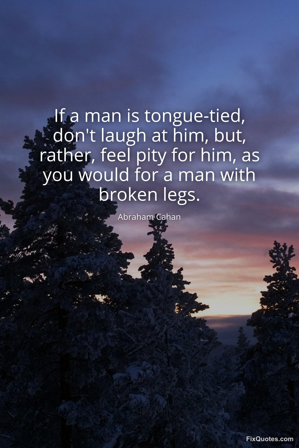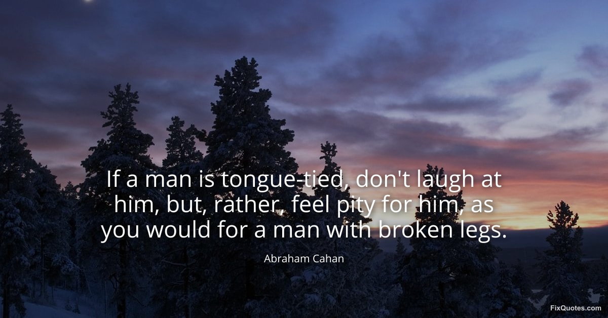 Cahan, Abraham. (2026, January 17). If a man is tongue-tied, don't laugh at him, but, rather, feel pity for him, as you would for a man with broken legs. FixQuotes. https://fixquotes.com/quotes/if-a-man-is-tongue-tied-dont-laugh-at-him-but-61450/