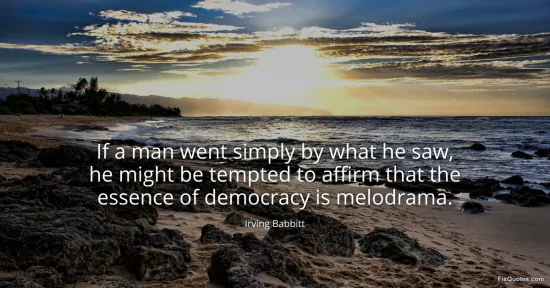 Babbitt, Irving. "If a man went simply by what he saw, he might be tempted to affirm that the essence of democracy is melodrama." FixQuotes. January 16, 2026. https://fixquotes.com/quotes/if-a-man-went-simply-by-what-he-saw-he-might-be-86003/.