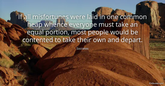 Socrates. "If all misfortunes were laid in one common heap whence everyone must take an equal portion, most people would be contented to take their own and depart." FixQuotes. February 8, 2026. https://fixquotes.com/quotes/if-all-misfortunes-were-laid-in-one-common-heap-27083/.