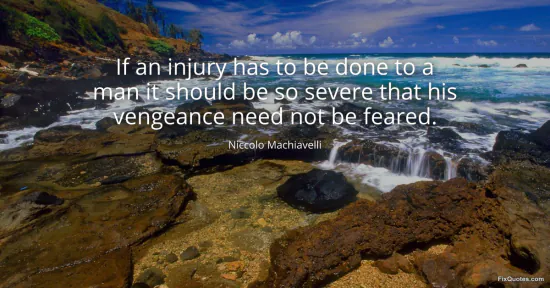 "If an injury has to be done to a man it should be so severe that his vengeance need not be feared." FixQuotes, 13 Jan. 2026, https://fixquotes.com/quotes/if-an-injury-has-to-be-done-to-a-man-it-should-be-1047/. Accessed 12 Feb. 2026.
