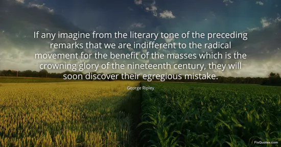 Ripley, George. (2026, January 16). If any imagine from the literary tone of the preceding remarks that we are indifferent to the radical movement for the benefit of the masses which is the crowning glory of the nineteenth century, they will soon discover their egregious mistake. FixQuotes. https://fixquotes.com/quotes/if-any-imagine-from-the-literary-tone-of-the-125100/