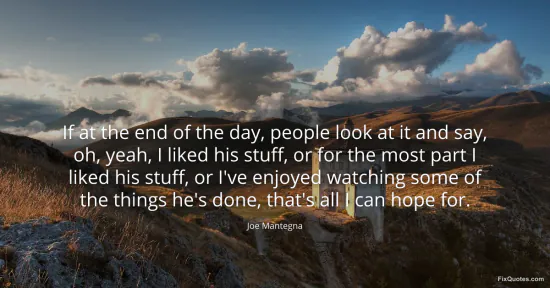 Mantegna, Joe. "If at the end of the day, people look at it and say, oh, yeah, I liked his stuff, or for the most part I liked his stuff, or I've enjoyed watching some of the things he's done, that's all I can hope for." FixQuotes. January 17, 2026. https://fixquotes.com/quotes/if-at-the-end-of-the-day-people-look-at-it-and-55739/.