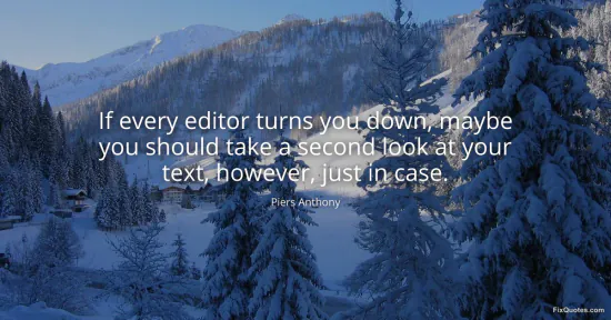 Rejection, in Piers Anthony's formulation, isn’t tragedy or conspiracy; it’s data. The line aims to puncture the romantic myth that editors are blind gatekeepers who routinely miss brilliance. Anthony’s “If every editor turns you down” sets a high bar: not one cranky reader, not one market mismatch, but a full chorus of no. At that point, he suggests, the most rational response isn’t righteous fury but a “second look” at the work itself.