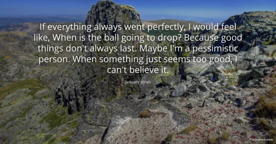 Jones, January. (2026, January 17). If everything always went perfectly, I would feel like, When is the ball going to drop? Because good things don't always last. Maybe I'm a pessimistic person. When something just seems too good, I can't believe it. FixQuotes. https://fixquotes.com/quotes/if-everything-always-went-perfectly-i-would-feel-62142/