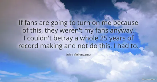 Mellencamp, John. "If fans are going to turn on me because of this, they weren't my fans anyway. I couldn't betray a whole 25 years of record making and not do this. I had to." FixQuotes. January 15, 2026. https://fixquotes.com/quotes/if-fans-are-going-to-turn-on-me-because-of-this-57073/.