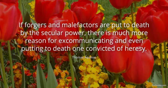 Aquinas, Thomas. "If forgers and malefactors are put to death by the secular power, there is much more reason for excommunicating and even putting to death one convicted of heresy." FixQuotes. January 18, 2026. https://fixquotes.com/quotes/if-forgers-and-malefactors-are-put-to-death-by-10277/.