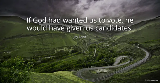 Leno, Jay. (2026, January 14). If God had wanted us to vote, he would have given us candidates. FixQuotes. https://fixquotes.com/quotes/if-god-had-wanted-us-to-vote-he-would-have-given-160412/