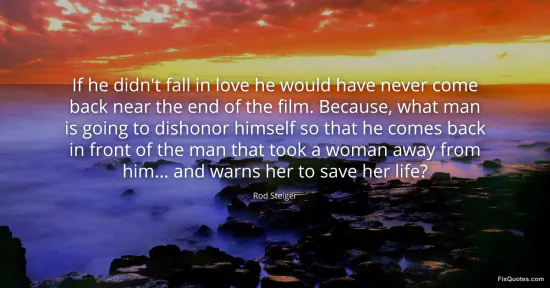 Steiger, Rod. (2026, January 17). If he didn't fall in love he would have never come back near the end of the film. Because, what man is going to dishonor himself so that he comes back in front of the man that took a woman away from him... and warns her to save her life? FixQuotes. https://fixquotes.com/quotes/if-he-didnt-fall-in-love-he-would-have-never-come-75520/