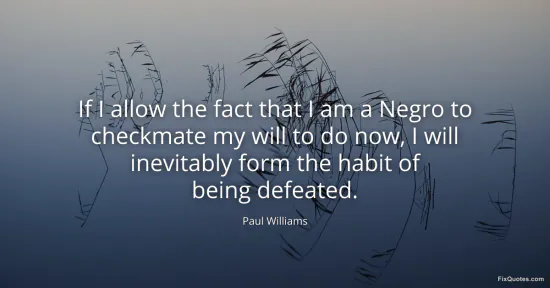 Williams, Paul. (2026, February 16). If I allow the fact that I am a Negro to checkmate my will to do now, I will inevitably form the habit of being defeated. FixQuotes. https://fixquotes.com/quotes/if-i-allow-the-fact-that-i-am-a-negro-to-118137/