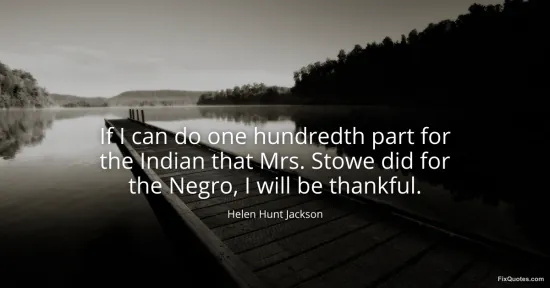 Jackson, Helen Hunt. "If I can do one hundredth part for the Indian that Mrs. Stowe did for the Negro, I will be thankful." FixQuotes. January 17, 2026. https://fixquotes.com/quotes/if-i-can-do-one-hundredth-part-for-the-indian-67523/.