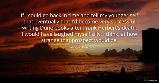 Anderson, Kevin J. (2026, January 16). If I could go back in time and tell my younger self that eventually that I'd become very successful writing Dune books after Frank Herbert's death, I would have laughed myself silly, I think, at how strange that prospect would be. FixQuotes. https://fixquotes.com/quotes/if-i-could-go-back-in-time-and-tell-my-younger-118713/