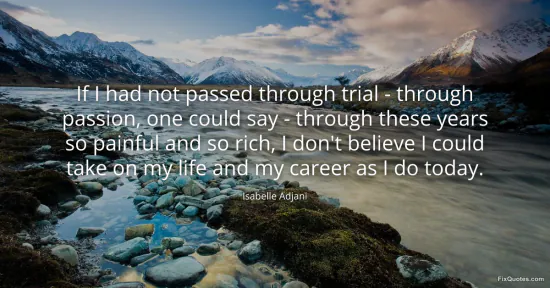 Adjani’s sentence is a quiet flex disguised as a confession: the authority she claims now is paid for in bruises. By pairing “trial” with “passion,” she frames suffering not as random misfortune but as the combustible fuel of artistry. “One could say” is doing sly work here too, a half-step back that lets her acknowledge melodrama while refusing to fully romanticize it. She’s naming the cliché of the tormented artist and then taking control of it.