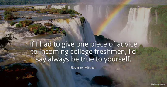 Mitchell, Beverley. "If I had to give one piece of advice to incoming college freshmen, I'd say always be true to yourself." FixQuotes. January 16, 2026. https://fixquotes.com/quotes/if-i-had-to-give-one-piece-of-advice-to-incoming-121881/.