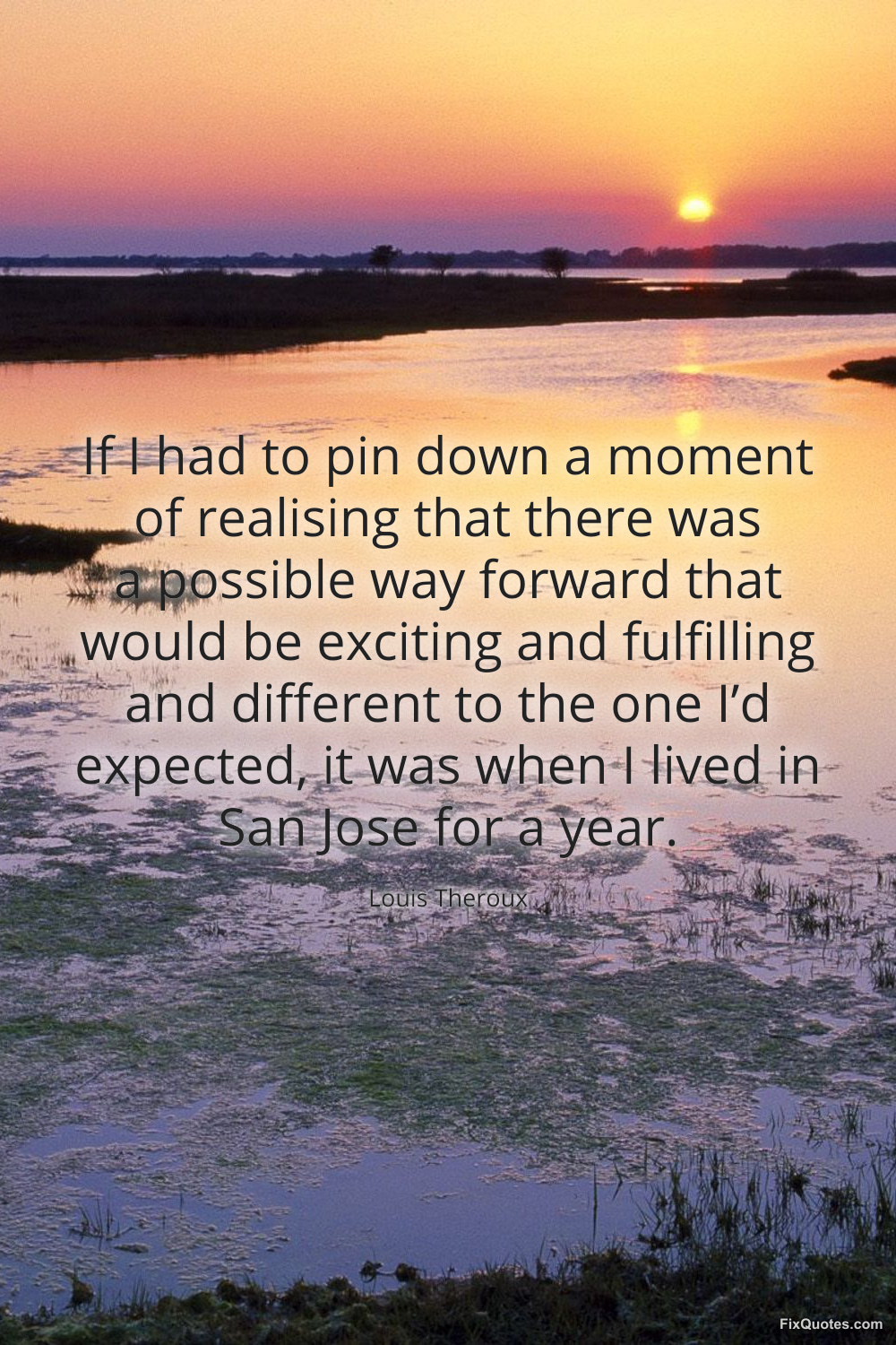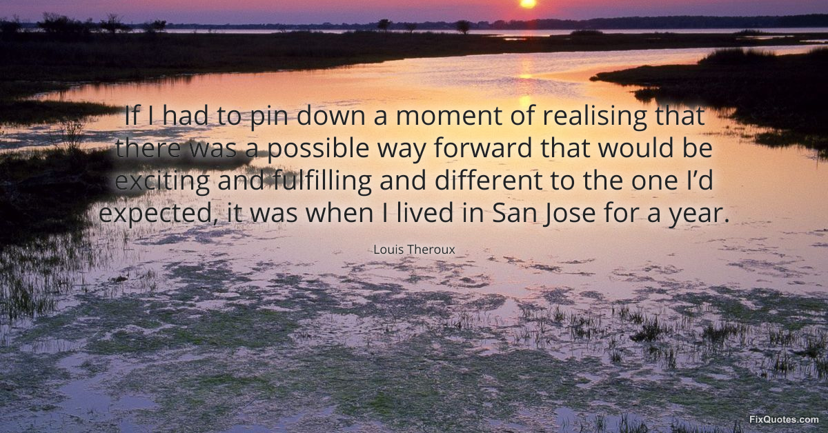 Theroux, Louis. (2026, March 23). If I had to pin down a moment of realising that there was a possible way forward that would be exciting and fulfilling and different to the one I’d expected, it was when I lived in San Jose for a year. FixQuotes. https://fixquotes.com/quotes/if-i-had-to-pin-down-a-moment-of-realising-that-186304/