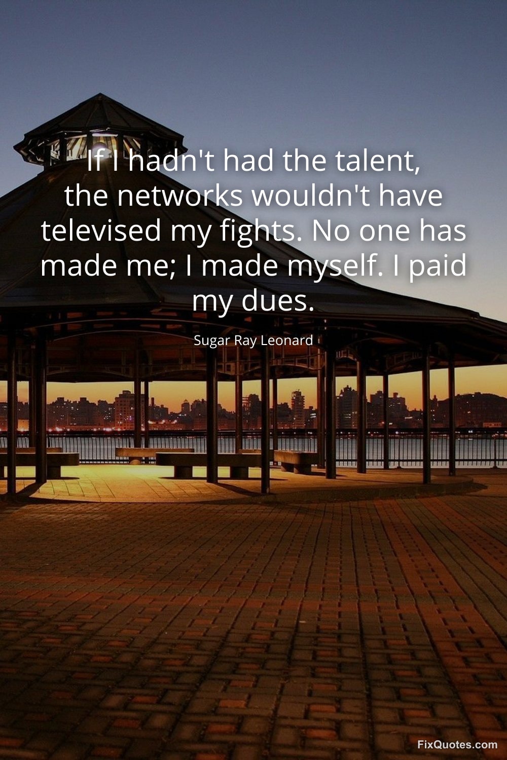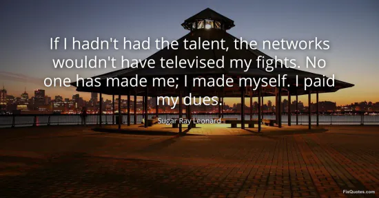 Leonard, Sugar Ray. (2026, January 16). If I hadn't had the talent, the networks wouldn't have televised my fights. No one has made me; I made myself. I paid my dues. FixQuotes. https://fixquotes.com/quotes/if-i-hadnt-had-the-talent-the-networks-wouldnt-104104/
