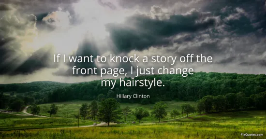 Clinton, Hillary. "If I want to knock a story off the front page, I just change my hairstyle." FixQuotes. February 27, 2026. https://fixquotes.com/quotes/if-i-want-to-knock-a-story-off-the-front-page-i-31540/.