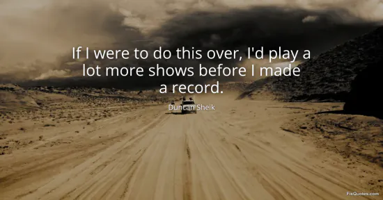Sheik, Duncan. "If I were to do this over, I'd play a lot more shows before I made a record." FixQuotes. February 19, 2026. https://fixquotes.com/quotes/if-i-were-to-do-this-over-id-play-a-lot-more-50785/.