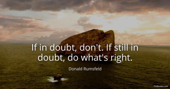Rumsfeld, Donald. (2026, January 17). If in doubt, don't. If still in doubt, do what's right. FixQuotes. https://fixquotes.com/quotes/if-in-doubt-dont-if-still-in-doubt-do-whats-right-48799/