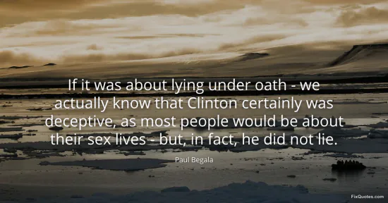 Begala, Paul. (2026, January 15). If it was about lying under oath - we actually know that Clinton certainly was deceptive, as most people would be about their sex lives - but, in fact, he did not lie. FixQuotes. https://fixquotes.com/quotes/if-it-was-about-lying-under-oath-we-actually-58600/
