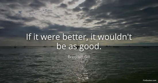 Gill, Brendan. (2026, January 15). If it were better, it wouldn't be as good. FixQuotes. https://fixquotes.com/quotes/if-it-were-better-it-wouldnt-be-as-good-142297/