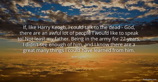 Lumley, Brian. (2026, January 16). If, like Harry Keogh, I could talk to the dead - God, there are an awful lot of people I would like to speak to! Not least my father. Being in the army for 22 years, I didn't see enough of him, and I know there are a great many things I could have learned from him. FixQuotes. https://fixquotes.com/quotes/if-like-harry-keogh-i-could-talk-to-the-dead--132012/