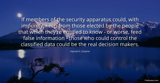 Greene, Harold H. (2026, January 15). If members of the security apparatus could, with impunity, keep from those elected by the people that which they're entitled to know - or worse, feed false information - those who could control the classified data could be the real decision makers. FixQuotes. https://fixquotes.com/quotes/if-members-of-the-security-apparatus-could-with-144092/