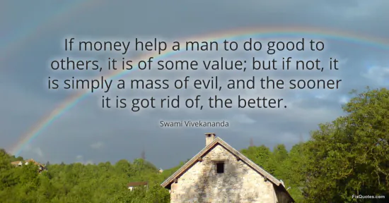 Vivekananda, Swami. "If money help a man to do good to others, it is of some value; but if not, it is simply a mass of evil, and the sooner it is got rid of, the better." FixQuotes. January 18, 2026. https://fixquotes.com/quotes/if-money-help-a-man-to-do-good-to-others-it-is-of-14965/.