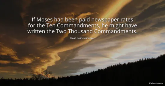 Singer, Isaac Bashevis. "If Moses had been paid newspaper rates for the Ten Commandments, he might have written the Two Thousand Commandments." FixQuotes. January 17, 2026. https://fixquotes.com/quotes/if-moses-had-been-paid-newspaper-rates-for-the-68222/.