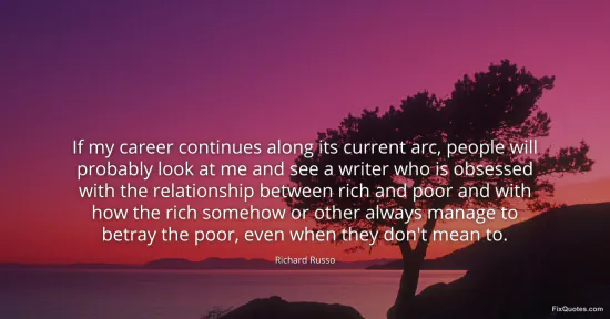 Russo, Richard. "If my career continues along its current arc, people will probably look at me and see a writer who is obsessed with the relationship between rich and poor and with how the rich somehow or other always manage to betray the poor, even when they don't mean to." FixQuotes. January 15, 2026. https://fixquotes.com/quotes/if-my-career-continues-along-its-current-arc-154053/.