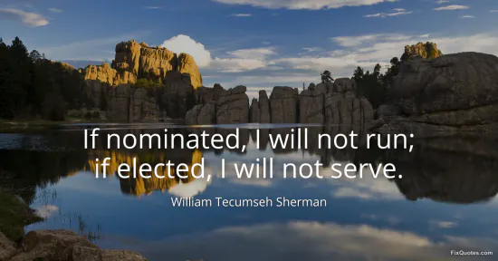 Sherman, William Tecumseh. "If nominated, I will not run; if elected, I will not serve." FixQuotes. February 9, 2026. https://fixquotes.com/quotes/if-nominated-i-will-not-run-if-elected-i-will-not-6546/.