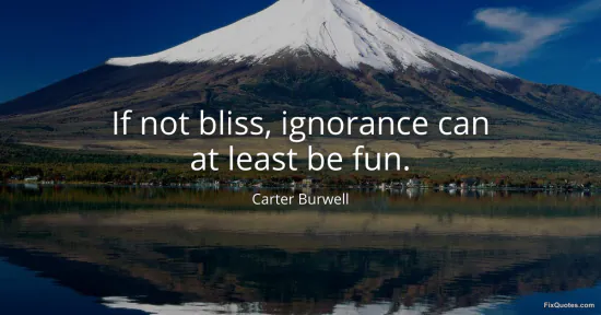 "If not bliss, ignorance can at least be fun"