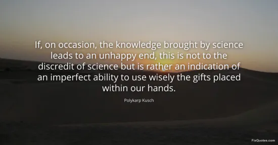 "If, on occasion, the knowledge brought by science leads to an unhappy end, this is not to the discredit of science but is rather an indication of an imperfect ability to use wisely the gifts placed within our hands"