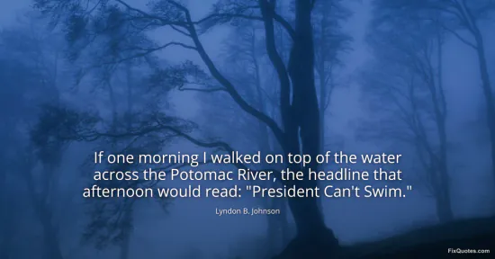 Johnson, Lyndon B. (2026, January 14). If one morning I walked on top of the water across the Potomac River, the headline that afternoon would read: "President Can't Swim.". FixQuotes. https://fixquotes.com/quotes/if-one-morning-i-walked-on-top-of-the-water-8743/