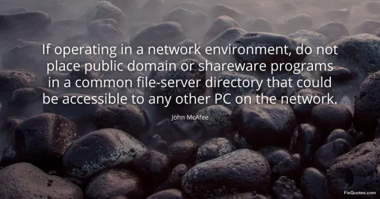 McAfee, John. (2026, January 16). If operating in a network environment, do not place public domain or shareware programs in a common file-server directory that could be accessible to any other PC on the network. FixQuotes. https://fixquotes.com/quotes/if-operating-in-a-network-environment-do-not-133135/