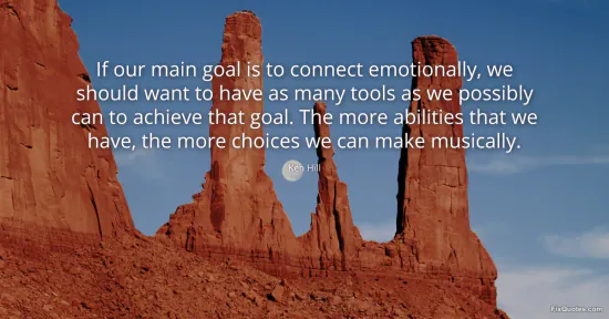 Hill, Ken. (2026, January 15). If our main goal is to connect emotionally, we should want to have as many tools as we possibly can to achieve that goal. The more abilities that we have, the more choices we can make musically. FixQuotes. https://fixquotes.com/quotes/if-our-main-goal-is-to-connect-emotionally-we-161080/