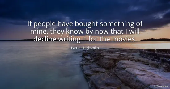 Highsmith, Patricia. "If people have bought something of mine, they know by now that I will decline writing it for the movies." FixQuotes. January 16, 2026. https://fixquotes.com/quotes/if-people-have-bought-something-of-mine-they-know-128579/.