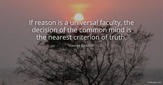Bancroft, George. (2026, January 17). If reason is a universal faculty, the decision of the common mind is the nearest criterion of truth. FixQuotes. https://fixquotes.com/quotes/if-reason-is-a-universal-faculty-the-decision-of-61422/