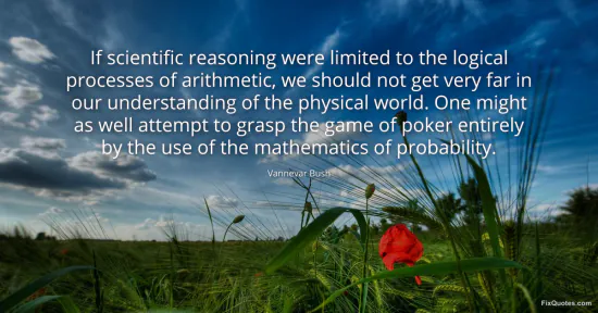 Bush, Vannevar. (2026, January 15). If scientific reasoning were limited to the logical processes of arithmetic, we should not get very far in our understanding of the physical world. One might as well attempt to grasp the game of poker entirely by the use of the mathematics of probability. FixQuotes. https://fixquotes.com/quotes/if-scientific-reasoning-were-limited-to-the-159900/