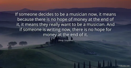 Coupland, Doug. (2026, January 17). If someone decides to be a musician now, it means because there is no hope of money at the end of it, it means they really want to be a musician. And if someone is writing now, there is no hope for money at the end of it. FixQuotes. https://fixquotes.com/quotes/if-someone-decides-to-be-a-musician-now-it-means-51217/